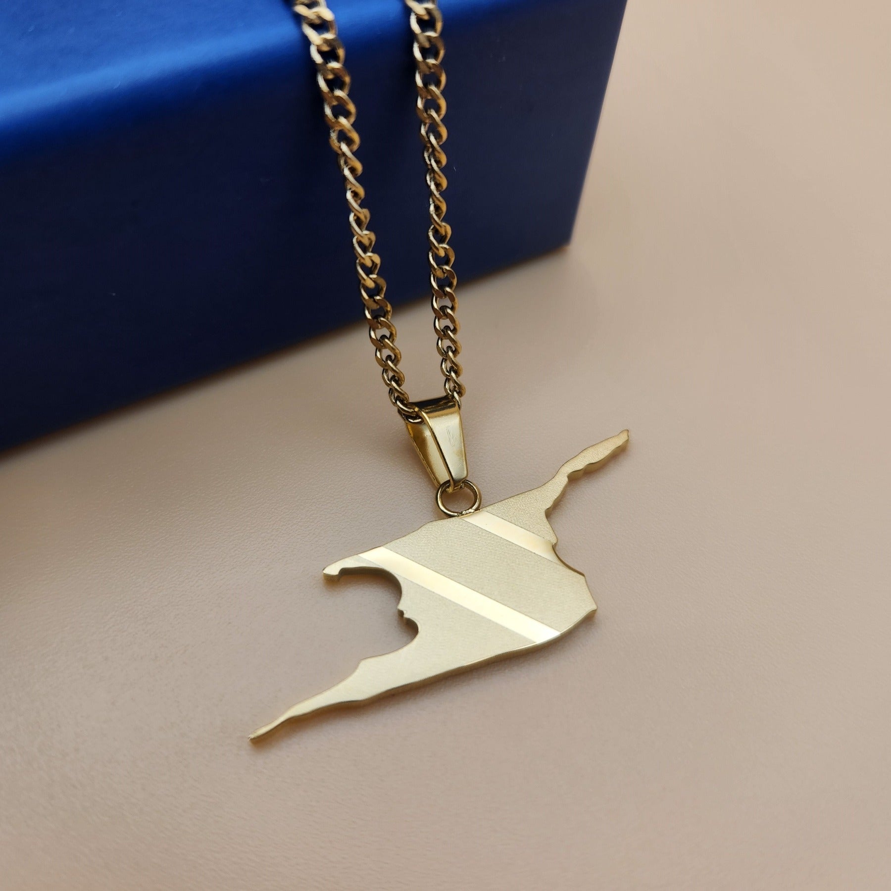 Show off your love for Trinidad & Tobago with this 18k gold plated stainless steel country map necklace. The perfect accessory for any traveler or proud Carribean, this necklace is not only a stylish piece of jewelry, but also a symbol of your cultural identity and heritage. Wear it with pride and show the world where your heart lies.